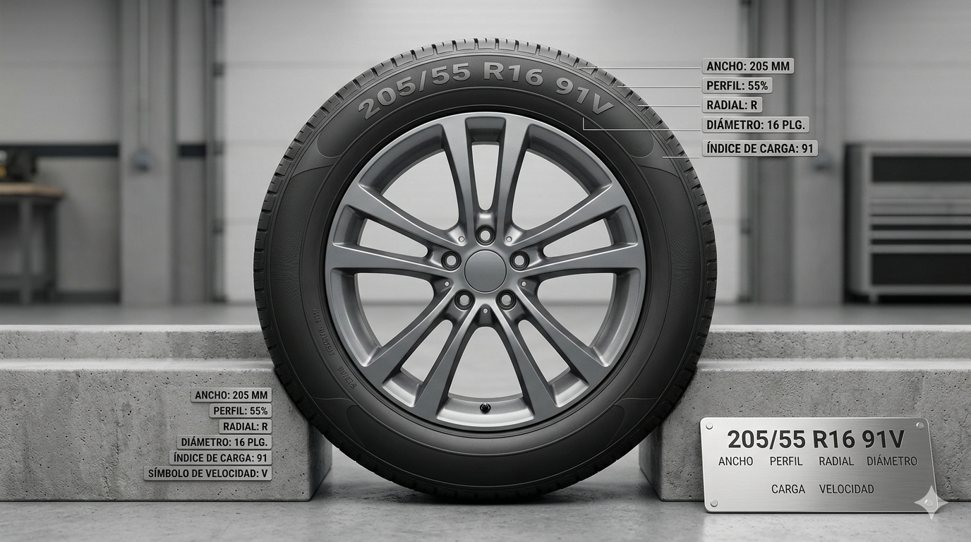 Para elegir el neumático correcto, es fundamental comprender la "nomenclatura de flanco". Cada código grabado en la goma representa una especificación de ingeniería crítica para el desempeño y la seguridad.